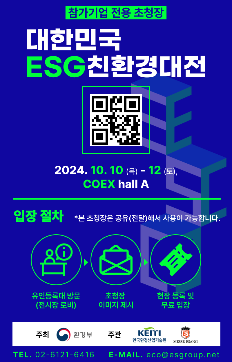 2024년 대한민국 ESG 친환경대전에 참여합니다.